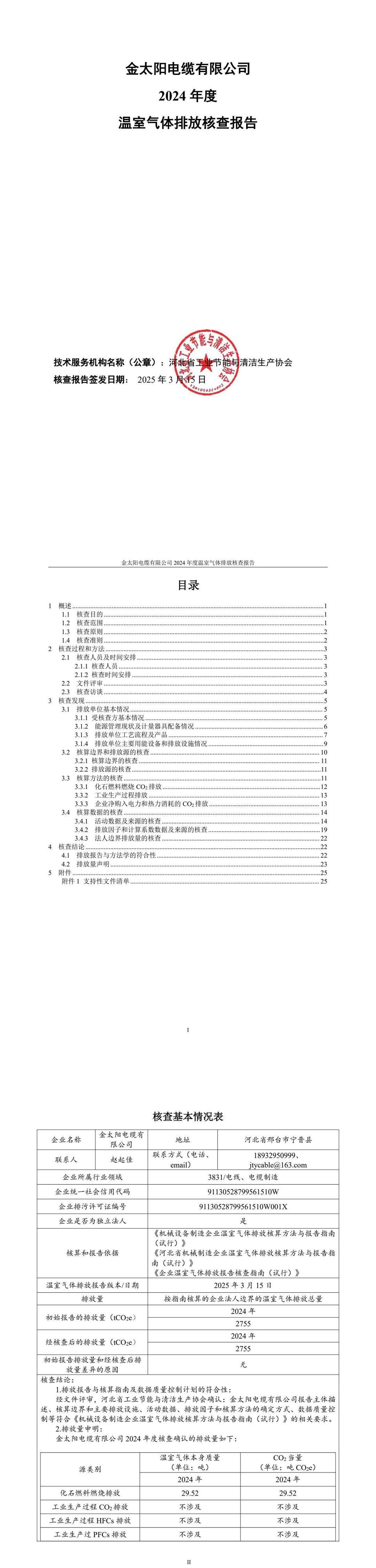 金太阳电缆有限公司-2024年温室气体排放核查报告-TR