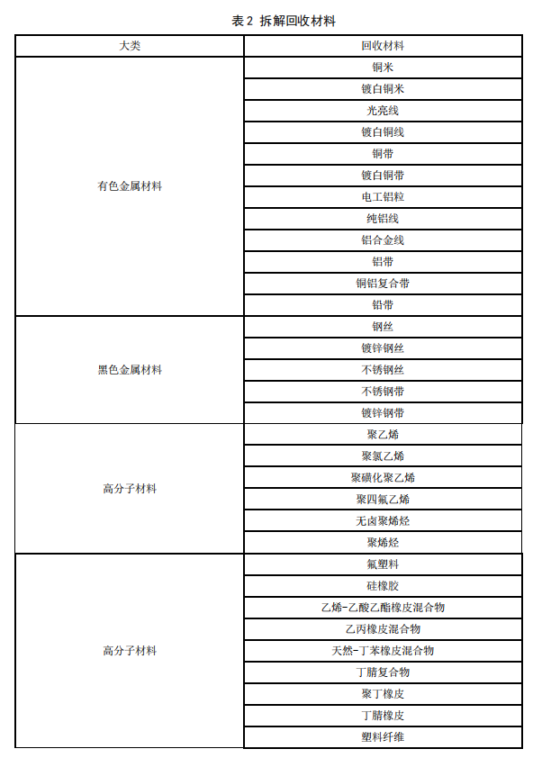 增加了机械初步拆解的规范要求,提出了采用剥皮设备进行机械初步拆解的要求;提出了废护套绝缘电缆剥皮后的处理方式。